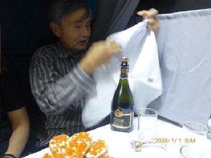 北京出発時には、ロシア車両が5両(寝台車)プラス中国車両2両(寝台車、食堂車各1両)を中国車両の機関車がけん引する編成。ロシア車両の乗客は非常に少ない。4人用コンパートメントに筆者ら2人。同じ車両にはほかに数人。それも、満州里とチタで下車。同じ車両には筆者ら2人だけ(ほかに車掌が数人)という貸切り状態。シャワー室も使えるので快適。